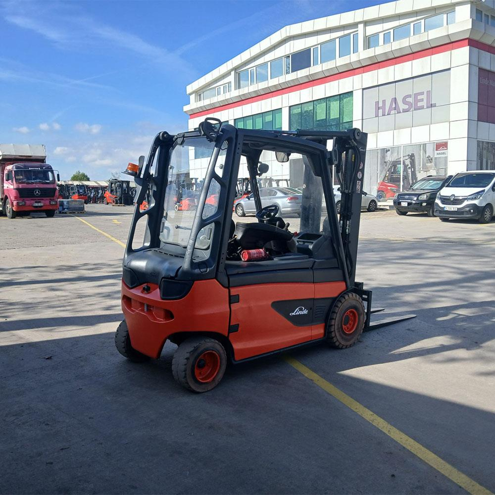 HASEL Güvencesiyle 2.5 Ton yük kapasitesine sahip, 11637 çalisma saatindeki, 2017 Model LINDE E25L-387 Elektrikli Forklift HASEL Genel Müdürlüğünden satılıktır. Bu makinemizde 4,7 metreye istifleme yapabilen TPX (Tripleks) asansör bulunmaktadır.
